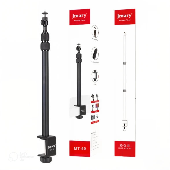 پایه نگهدارنده رومیزی Jmary MT-49 یک انتخاب ایدهآل برای کسانی است که میخواهند در عکاسی، فیلمبرداری و تولید محتوا به بیشترین کیفیت و راحتی دست پیدا کنند. این پایه با طراحی مستحکم از آلیاژ آلومینیوم، قابلیت نصب آسان بر روی میز یا هر سطح مشابه با گیره C-Clamp، و تنظیم ارتفاع بین 38.5 تا 93.5 سانتیمتر، آزادی کامل در انتخاب زاویه و موقعیت را به شما میدهد. چه برای لایو استریم، آموزش آنلاین، ضبط ویدئو، نورپردازی یا عکاسی ماکرو باشد، Jmary MT-49 با قابلیت چرخش 360 درجه و اتصال استاندارد 1/4 اینچ، همراهی مطمئن و انعطافپذیر برای دوربین، موبایل یا تجهیزات نورپردازی شماست.