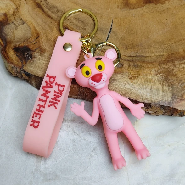 جاکلیدی سیلیکونی وارداتی درجه یک طرح پلنگ صورتی همراه با بند آویز