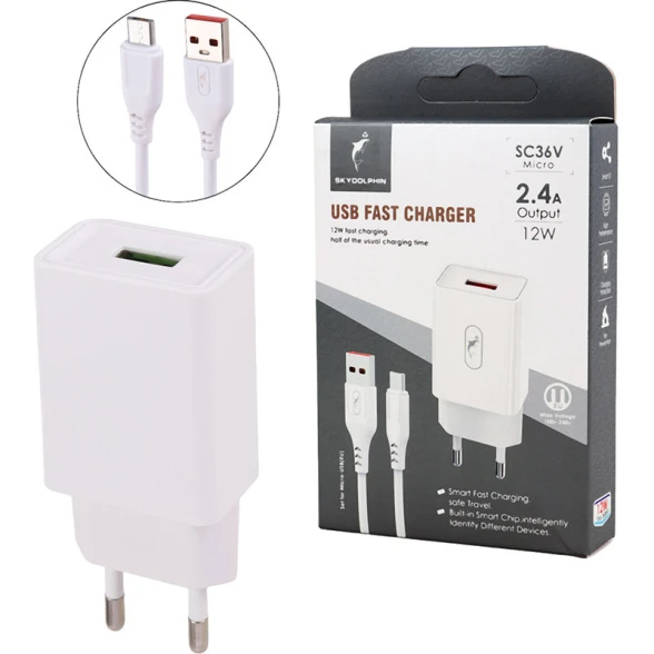 شارژر دیواری فست شارژ 12 وات SkyDolphin مدل SC36V با کابل Micro